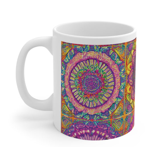 Colorful Mandala Patterns 2. C-Handled 11 oz mug. Porcelain Not Ceramic. Printed & Glazed Not Dye Sublimation. Dishwasher / Microwave Safe